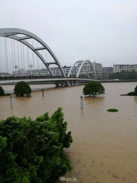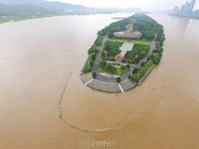 湖南长沙持续暴雨 橘子洲头观景台被淹 |