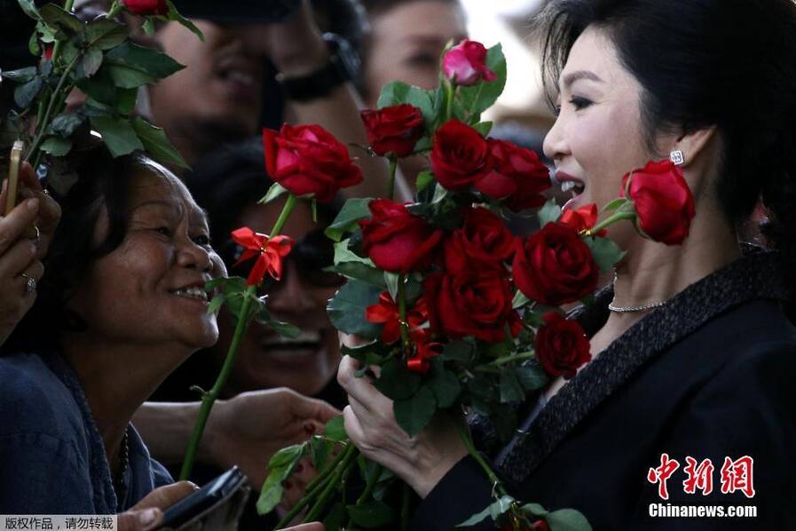 英拉抵达法院 民众送上玫瑰花 |